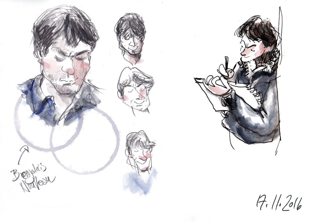For three days sketchers from all Europe show their artwork in the Centre Polydrome, sketch and talk together, and meet for the evening Drink & Draw in the restaurant "1513" close to the impressive black cathedral. Thank you very much, Tazab, for your energy and joy to bring us all together.